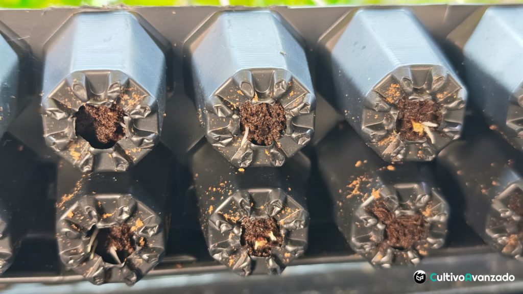 - Medio: bandeja Eazy plug de 104 o bien de turba o coco prensado, lana de roca (rockwool), tierra de semillero o coco fino.
